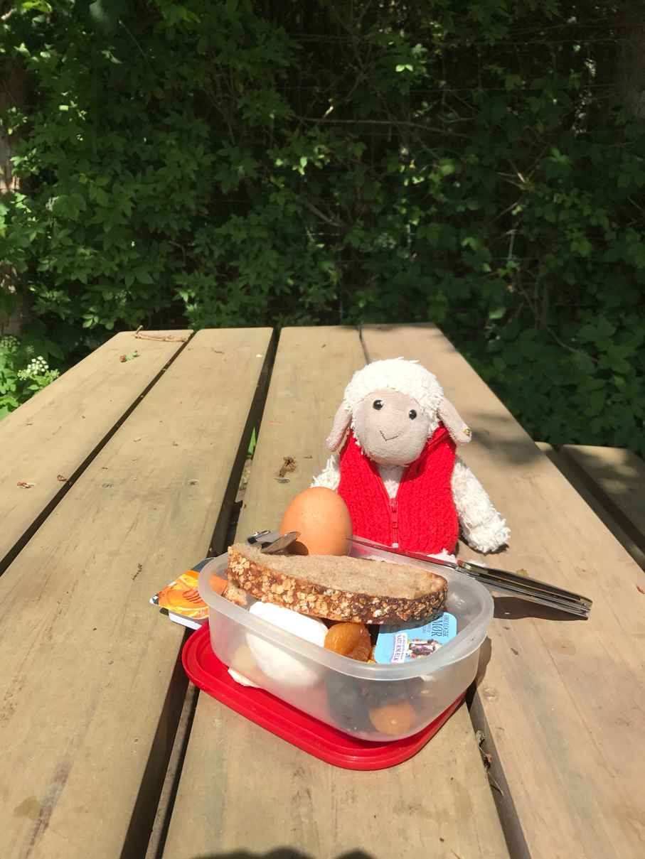 Lucy rarely comes out when the weather is cold or wet and hibernates in her pannier reading about where we are going. Although she did venture out at Varberg for an ice cream.